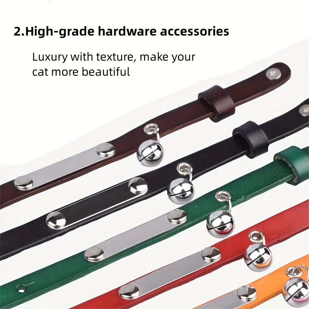 Collar Cuero Premium para Gato con Cascabel y Placa Grabada 😺