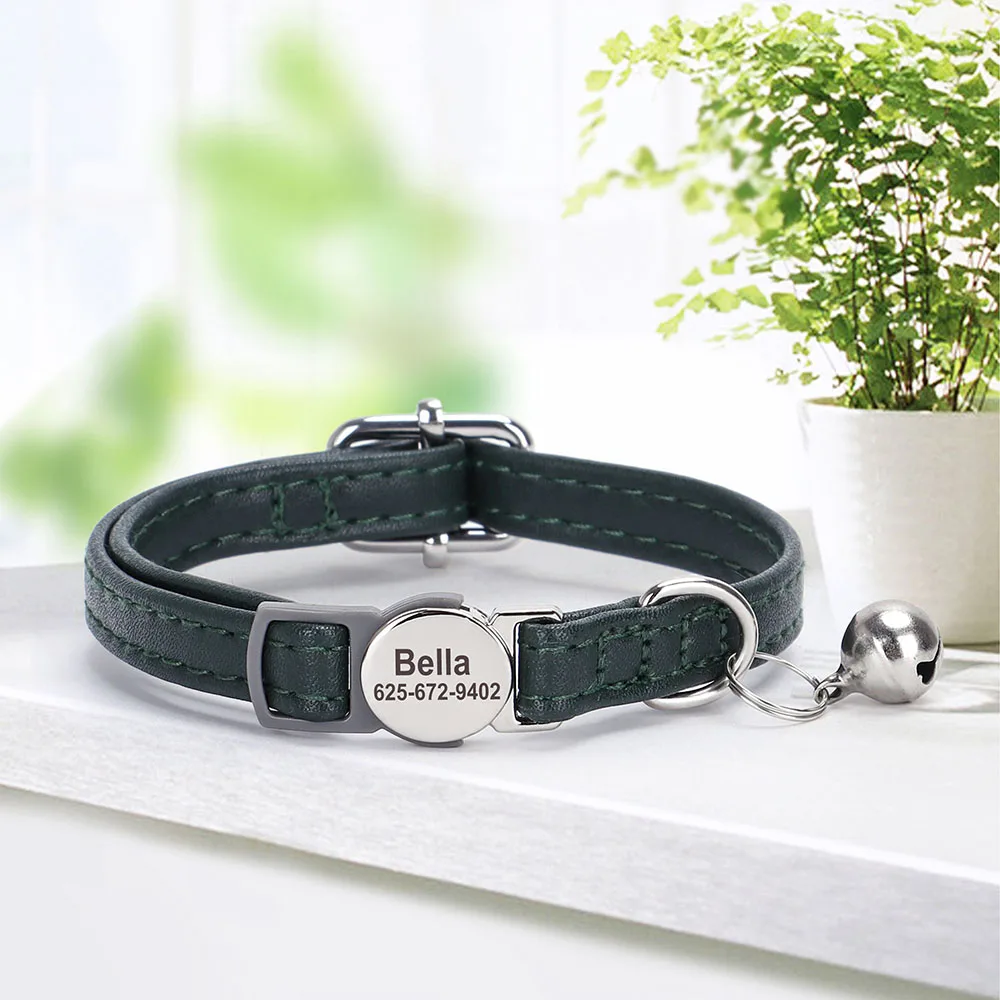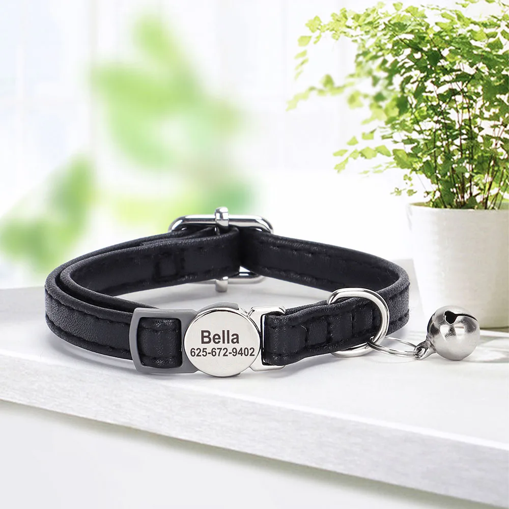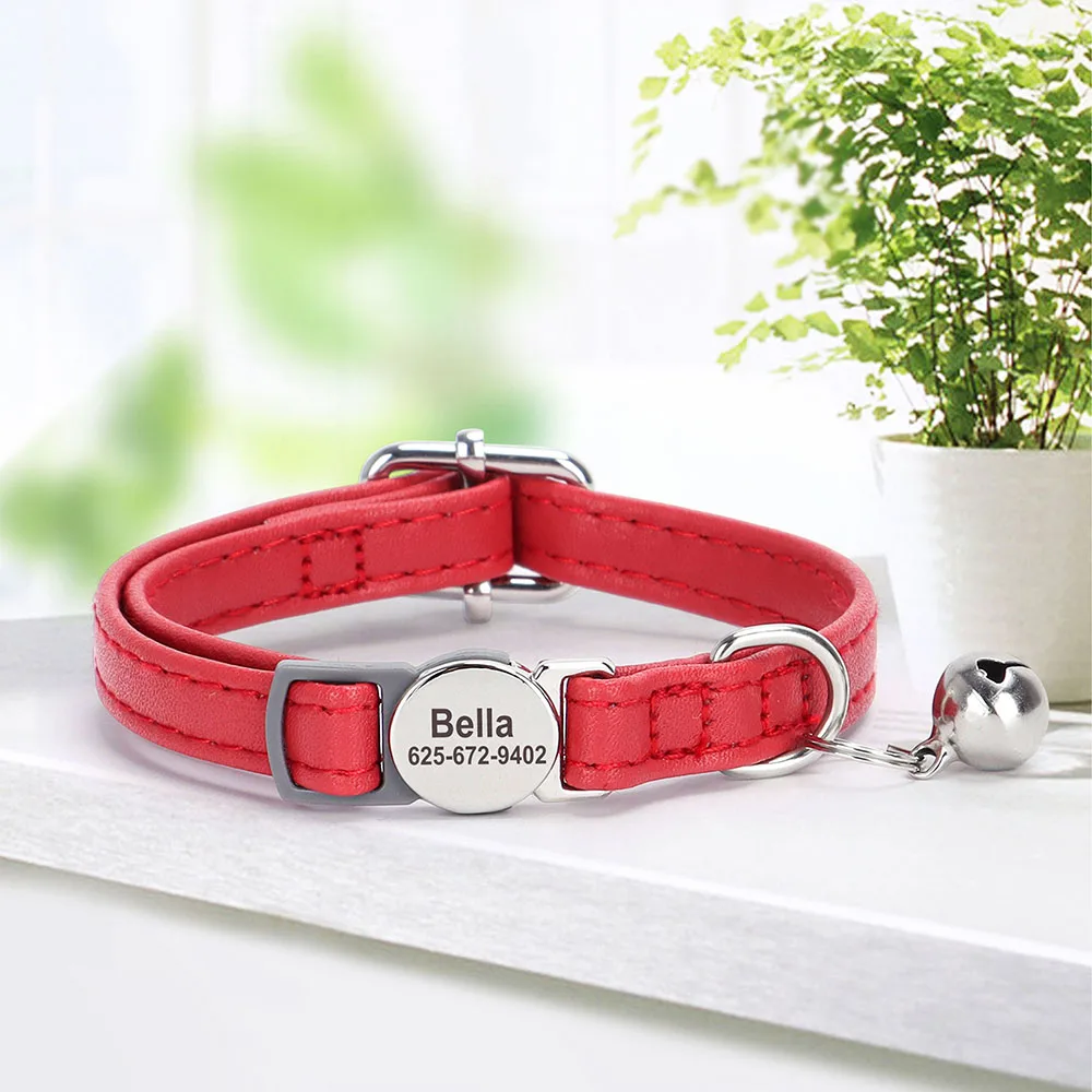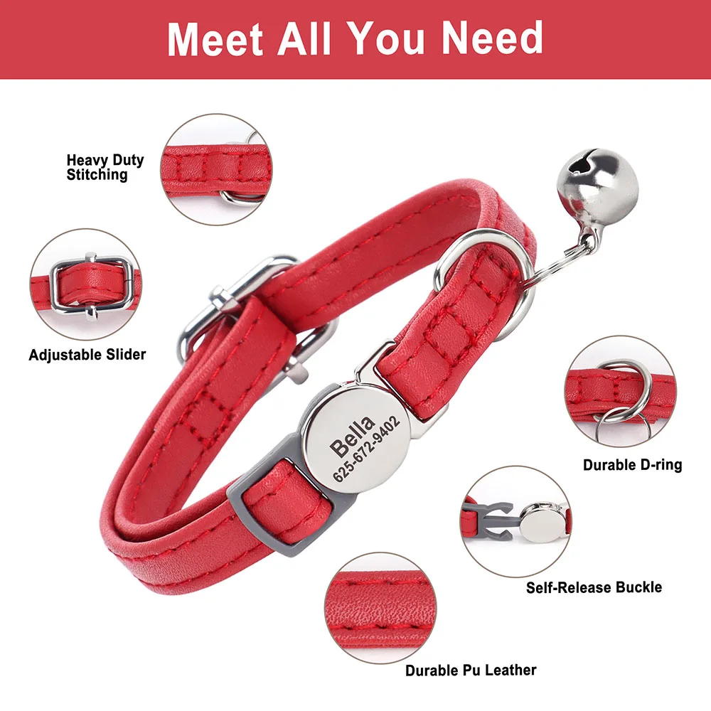 Custom Cat Collar Personalized PU Leather Kitten Puppy Collars Free Engraved ID Nameplate Necklace With Bell for cat Anti-lost